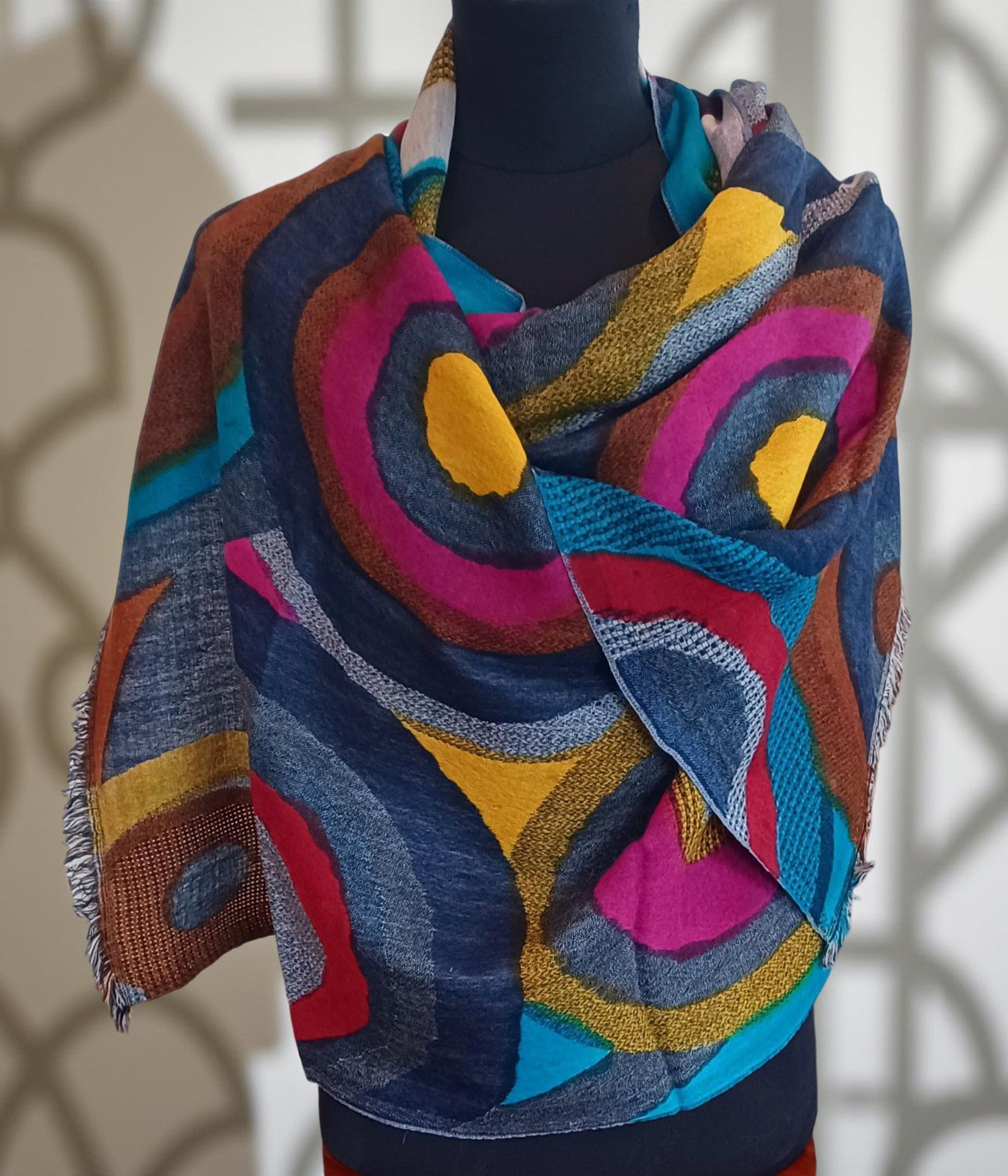 ndulge in the beauty of craftsmanship with the Hand-Painted Merino Texture Scarf in a striking blue shade. This luxurious scarf is crafted from 90% Merino wool and 10% silk, offering a perfect balance of warmth, softness, and durability. Each scarf features a unique hand-painted texture, making it a one-of-a-kind accessory that adds artistic flair to your wardrobe.
