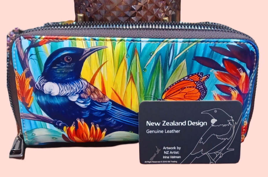 Discover the epitome of elegance with our stunning leather purse, exquisitely showcasing artwork by renowned NZ artist Angie Dennis. Bursting with vibrant colors, this unique piece celebrates the native wildlife and flowers of New Zealand, making it a standout accessory for any occasion. At ElenaPia Fashion, we take pride in curating items that blend art and craftsmanship, aligning with our commitment to natural fabrics and skincare. Elevate your style with this distinctive purse/wallet, a true testament to the beauty of nature and artistry.