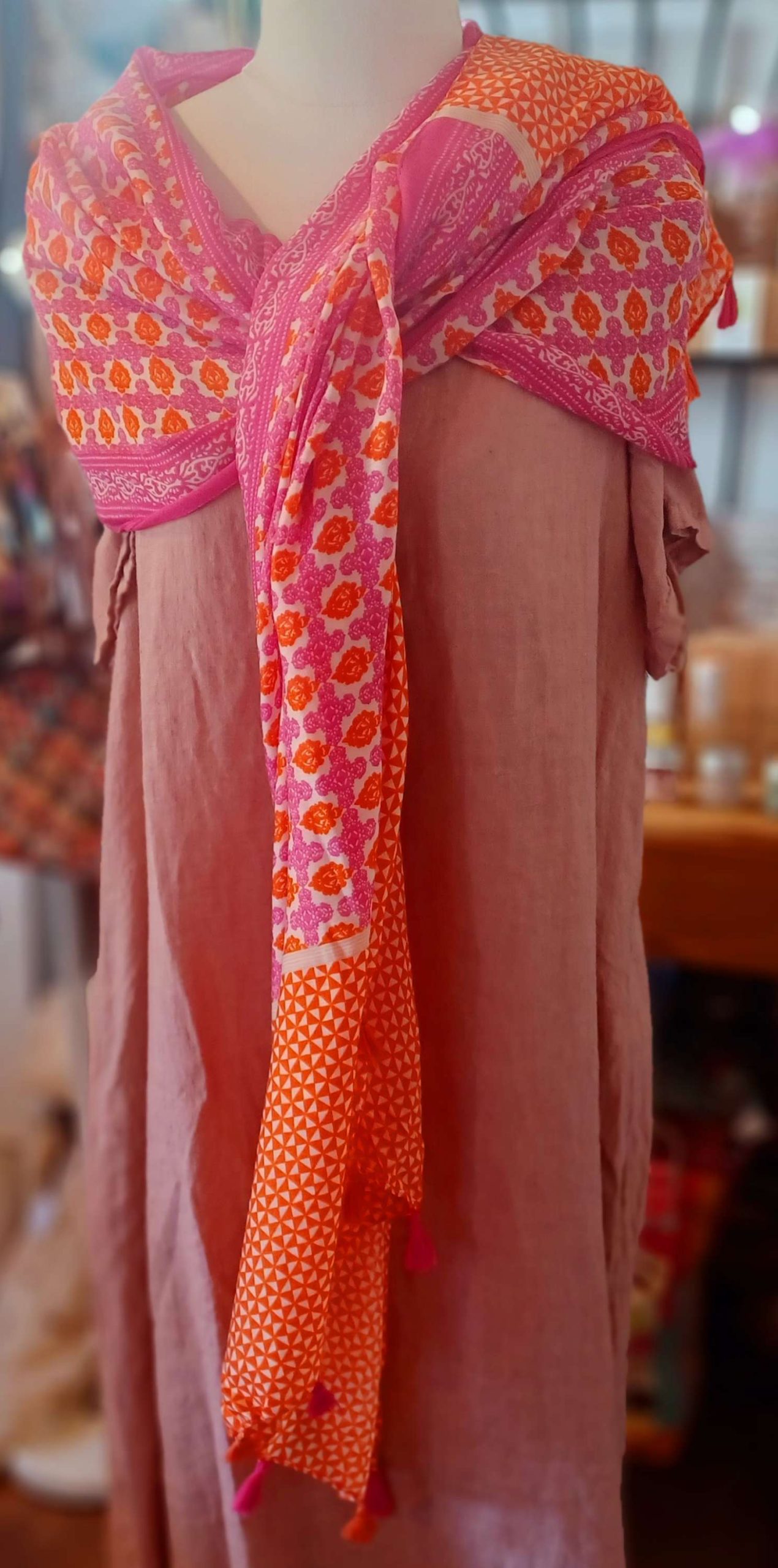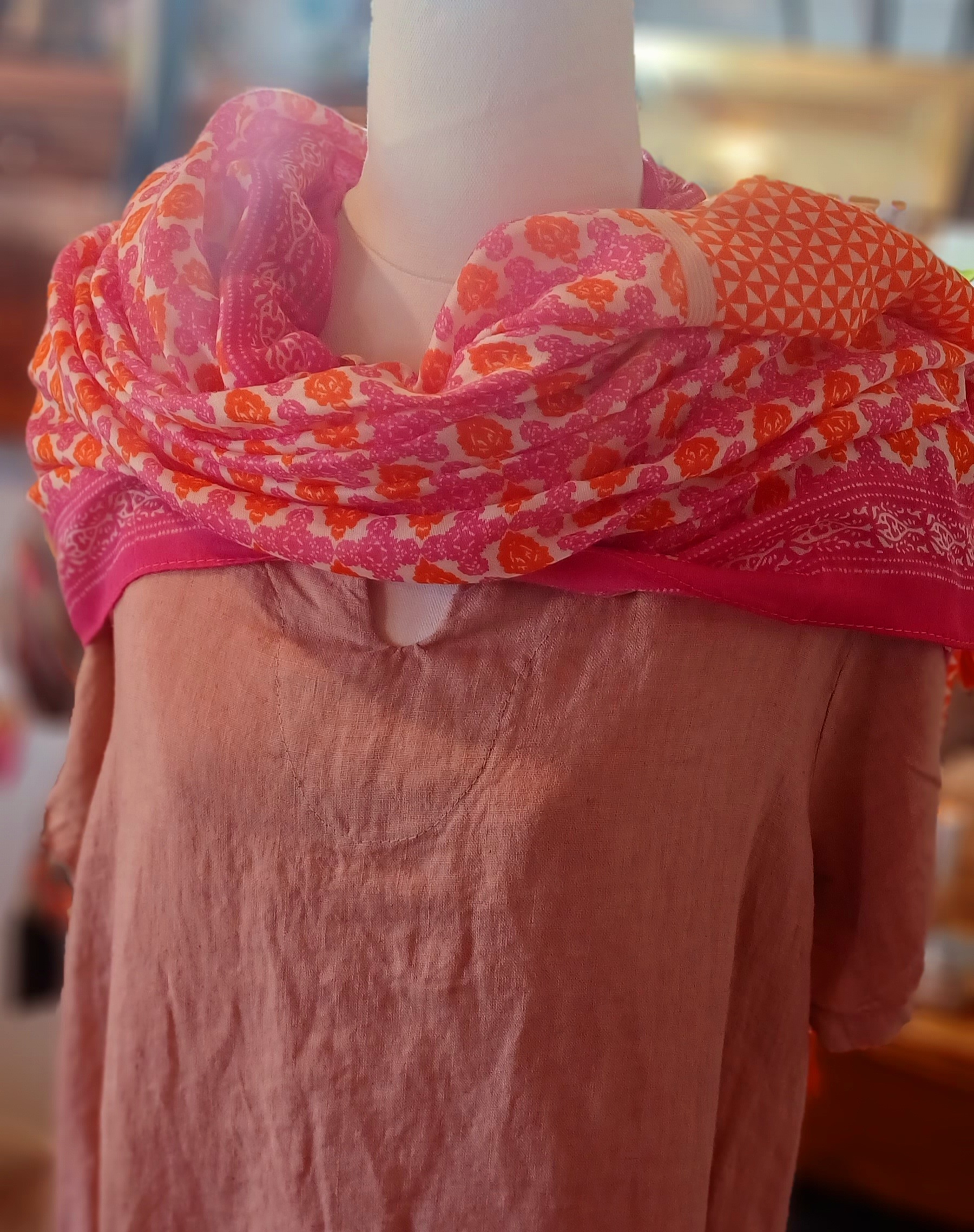 Discover effortless elegance with our women’s cotton scarf in stunning colors, vibrant orange with floral pink for a soft look. Ideal for any season, this versatile piece can be worn as a scarf or sarong, making it a perfect addition to your wardrobe. At In at the Station, we pride ourselves on offering premium quality pieces that reflect our commitment to natural fabrics. Embrace both style and sustainability with this exquisite cotton scarf, thoughtfully designed to enhance your natural beauty.