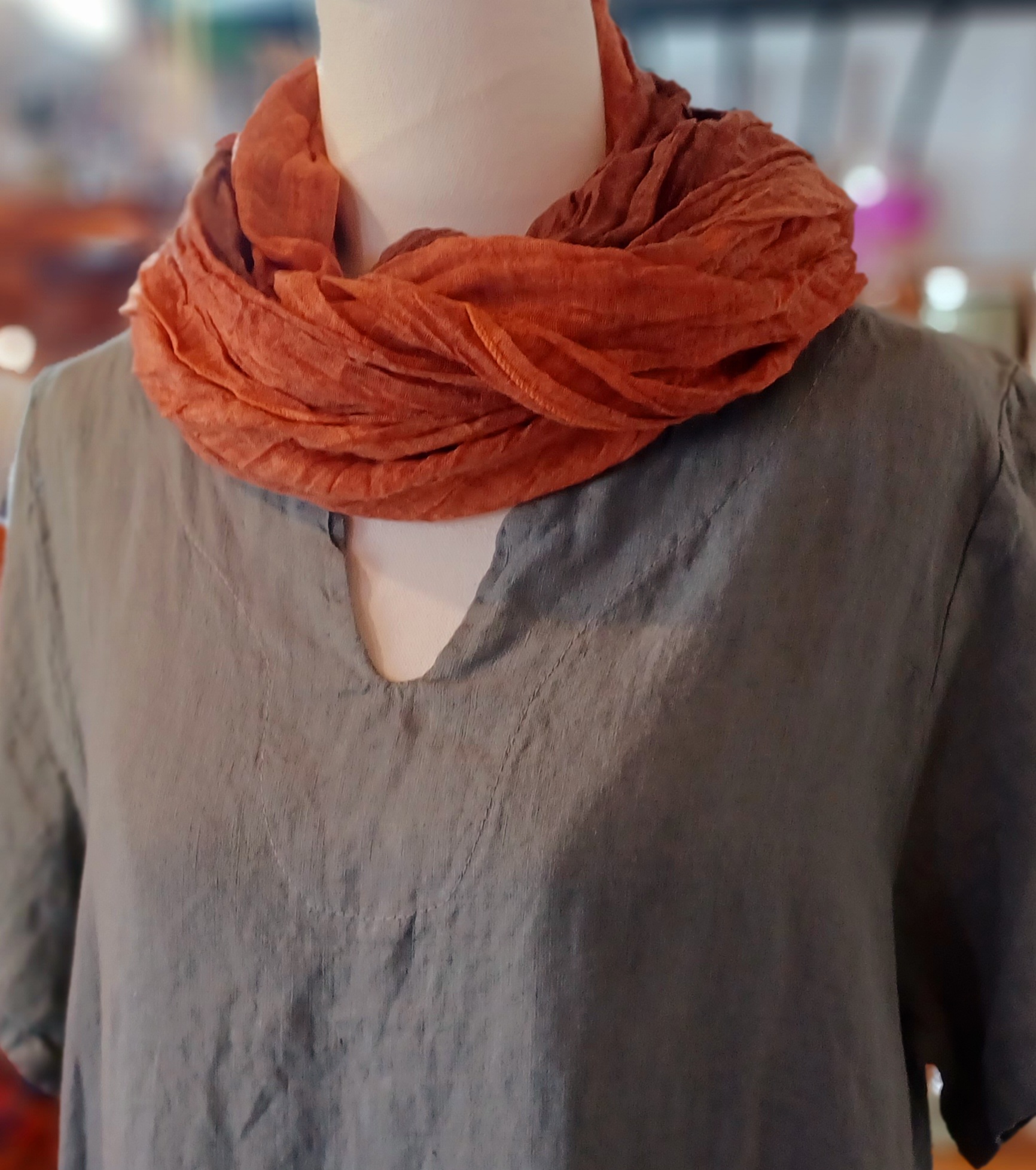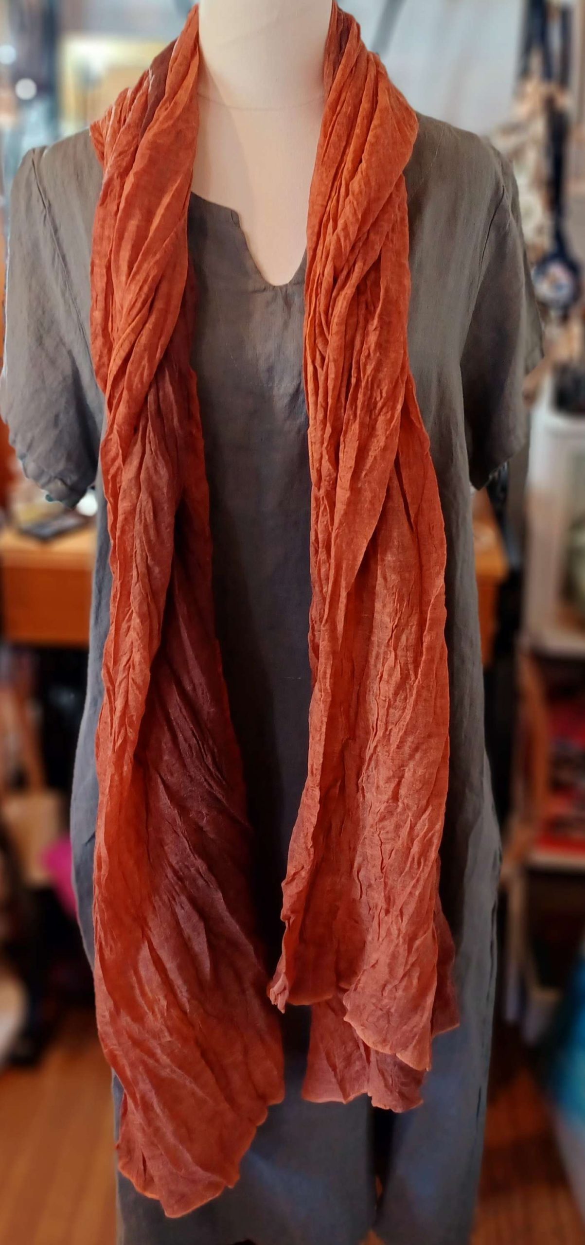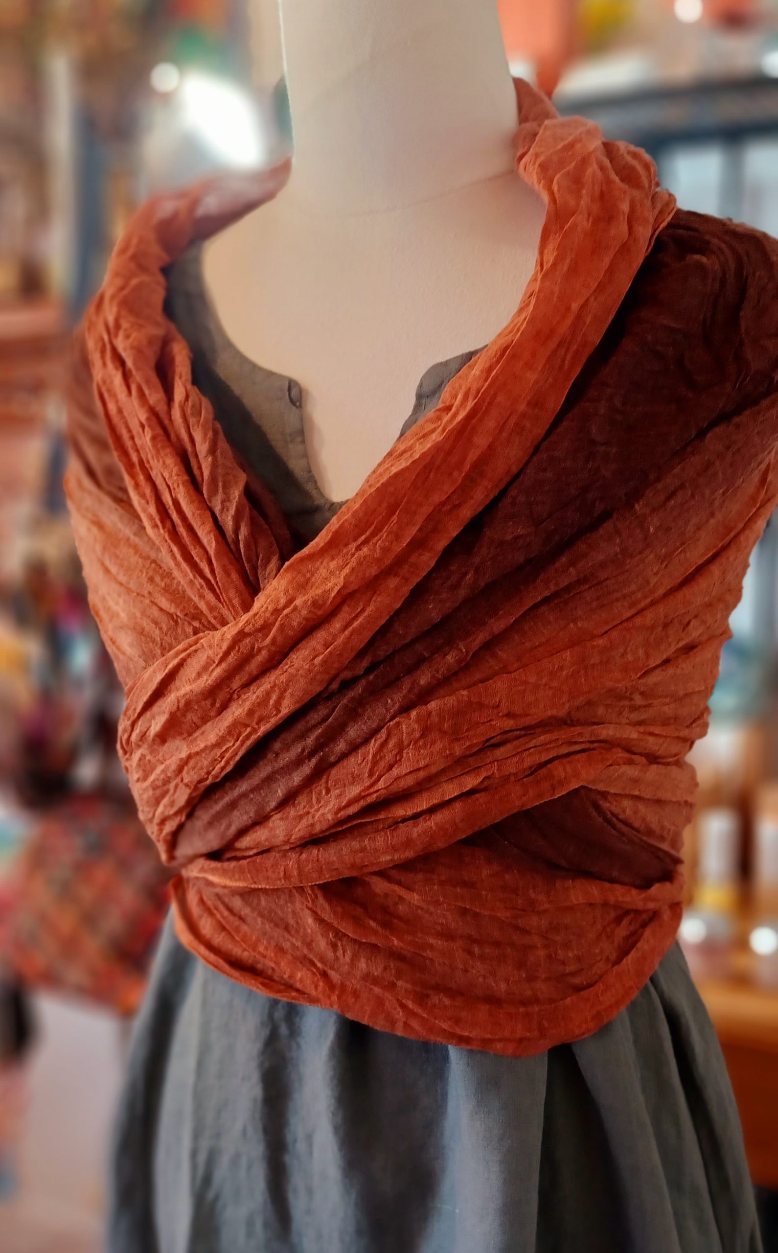 Discover effortless elegance with our women’s cotton scarf in stunning colors, ranging soft burnt terricotta to a slight darker blend. Ideal for any season, this versatile piece can be worn as a scarf or sarong, making it a perfect addition to your wardrobe. At In at the Station, we pride ourselves on offering premium quality pieces that reflect our commitment to natural fabrics. Embrace both style and sustainability with this exquisite cotton scarf, thoughtfully designed to enhance your natural beauty.