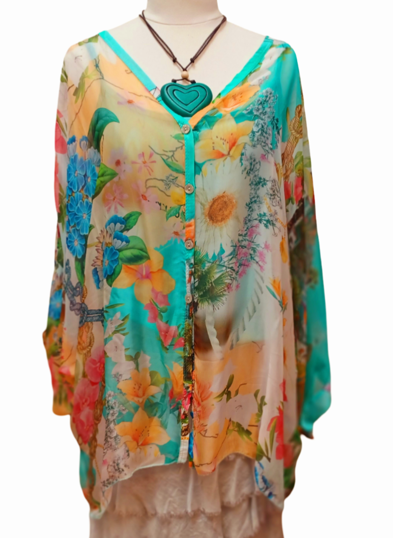 Discover effortless elegance with our Ladies Italian Silk Top with Camisole, crafted from the finest Italian textiles. Made in Italy, this luxurious piece features a button-up front and a flattering V-neckline that exudes sophistication. The vibrant color and light, elegant silk promise to make a statement, perfect for any occasion. Elevate your wardrobe with a touch of Italian craftsmanship from ElenaPia Fashion, your go-to boutique for natural fabrics and impeccable style.
